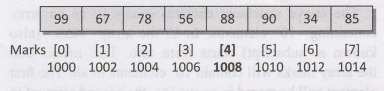 67, 78, 56, 88, 90, 34, 85}. Calculate the address of marks[4] if base address