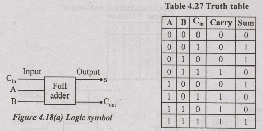 Figure 4.19 shows the full adder logic diagram. The full-adder can also be implemented with two half-adders and one OR gate, as shown in figure 4.20.