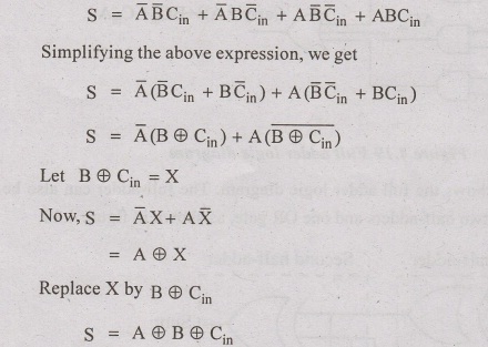 Similarly, the logic expression for Cout can be written by summing up the input combinations for which C out is 1, as given below.