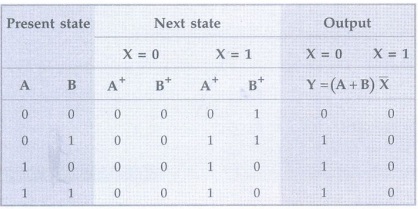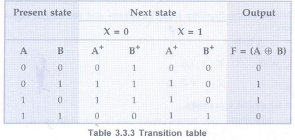 3.3.1 can be converted into state table as sown in Table 3.3.2. Here, new