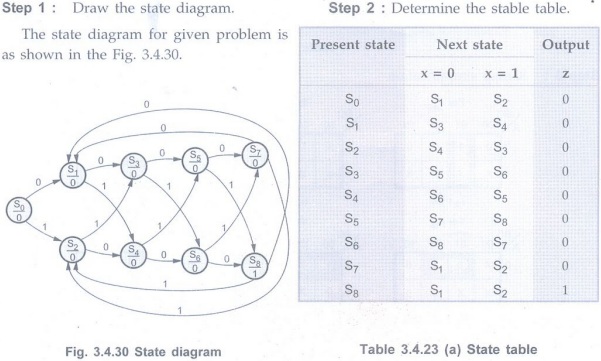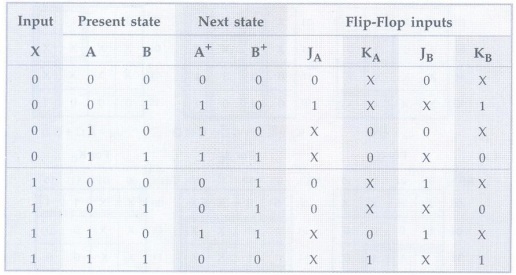 It is necessary to first obtain the state table from the given circuit information such as a state diagram, a timing-diagram, or other pertinent information.