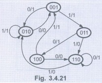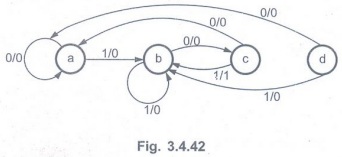 Example 3.4.20: Design a clocked sequential machine using JK flip-flops for the state diagram shown in Fig. 3.4.42. Use state reduction if possible. Make proper state assignment.