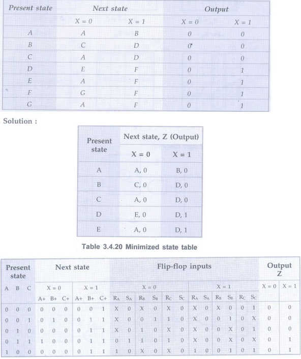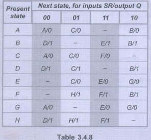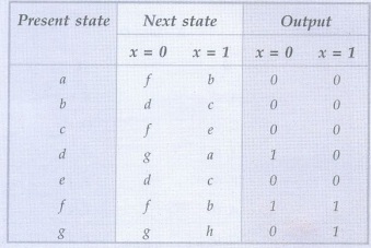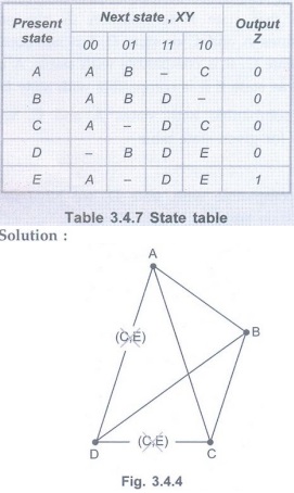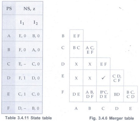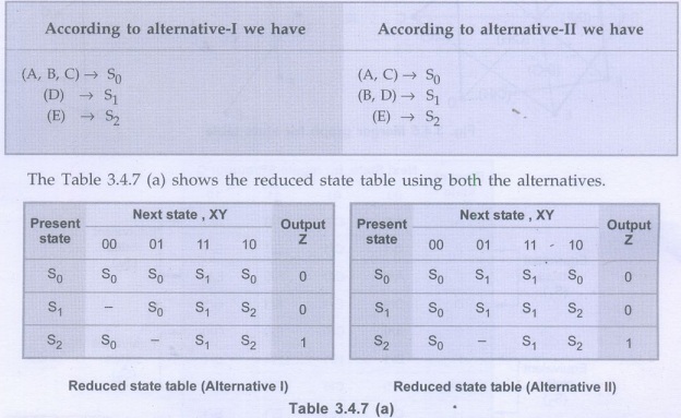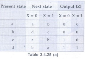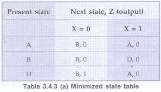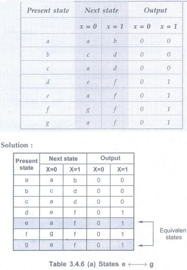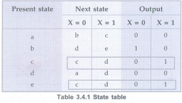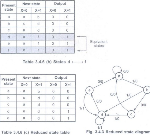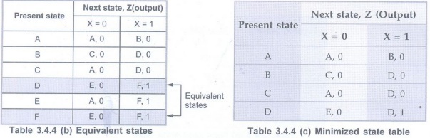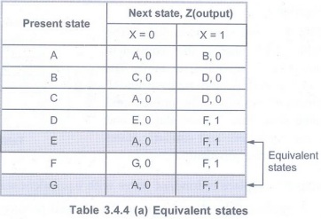 state F. Now, there are no equivalent states and hence Table 3.4.4 (c) shows