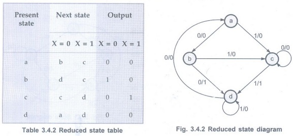 Table 3.4.2. The state diagram for the reduced table consists of only four