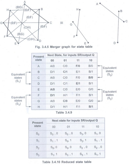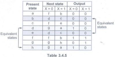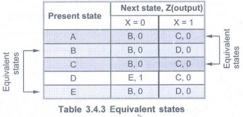 Find equivalent states. The Table 3.4.3 shows the equivalent states in the