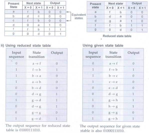 5. Explain the steps involved in the reduction of state table. AU: Dec.-10, Marks 10