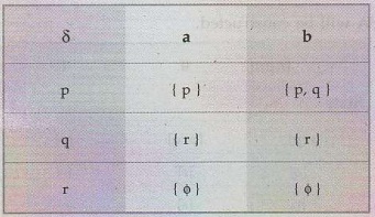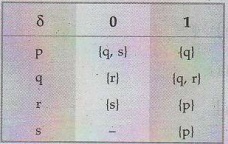 q3, ...qi} if we get input a and it goes to the next states [P1, P2, ...