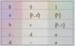 Construct a DFA equivalent to the NFA. M=({a, b, c, d}, {0,1} δ, a {b, d}) where