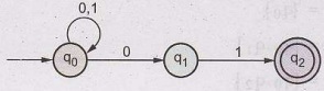 Construct NFA that accepts all string that end in 01. Give its transition table