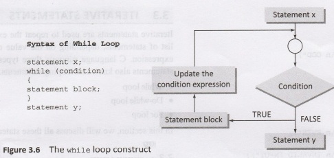 The while loop provides a mechanism to repeat one or more statements while a particular condition is true. Figure 3.6 shows the syntax and general form of representation of a while loop.