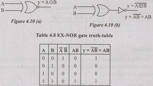 The term EX-NOR gate is formed by NOT and exclusion OR gate. It is logical equivalent circuit and symbol is shown in figure 4.10 (a) & (b).