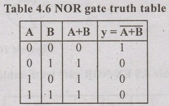 NOR gate also universal gate, i.e NOR gate can be used to construct all basic gates AND, OR and NOT gates. The truth table for a two input NOR gate is shown in Table 4.6.