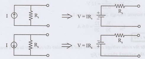 If a current source has a resistance connected in parallel, it can be transformed into an equivalent voltage source with the resistance connected in series.
