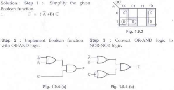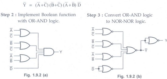 The NOR function is a dual of the NAND function. For this reason, the implementation procedures and rules for NOR-NOR logic are the duals of the corresponding procedures and rules developed for NAND-NAND logic.
