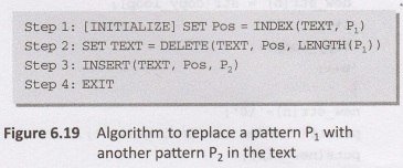 6.19 shows an algorithm to replace a pattern P1 with another pattern P2 in the