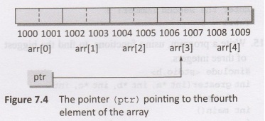 If ptr originally points to arr [2], then ptr++ will point to the next element, i.e., arr [3]. This is shown in Figure 7.4.
