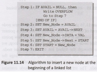 11.14 shows the algorithm to insert a new node at the beginning of a linked
