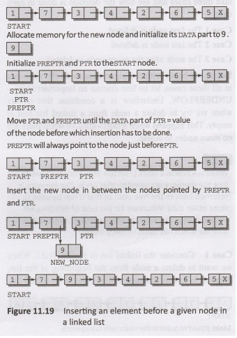 11.20 shows the algorithm to insert a new node before a given node. In Step 5,