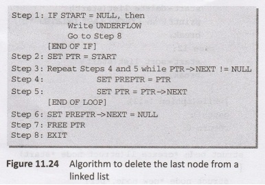 11.24 shows the algorithm to delete the last node from a linked list. In Step