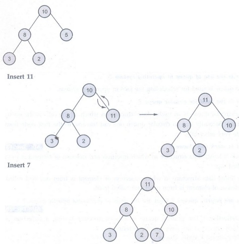 5, 3, 2. Two new elements 11 and 7 are inserted into the heap in that order.